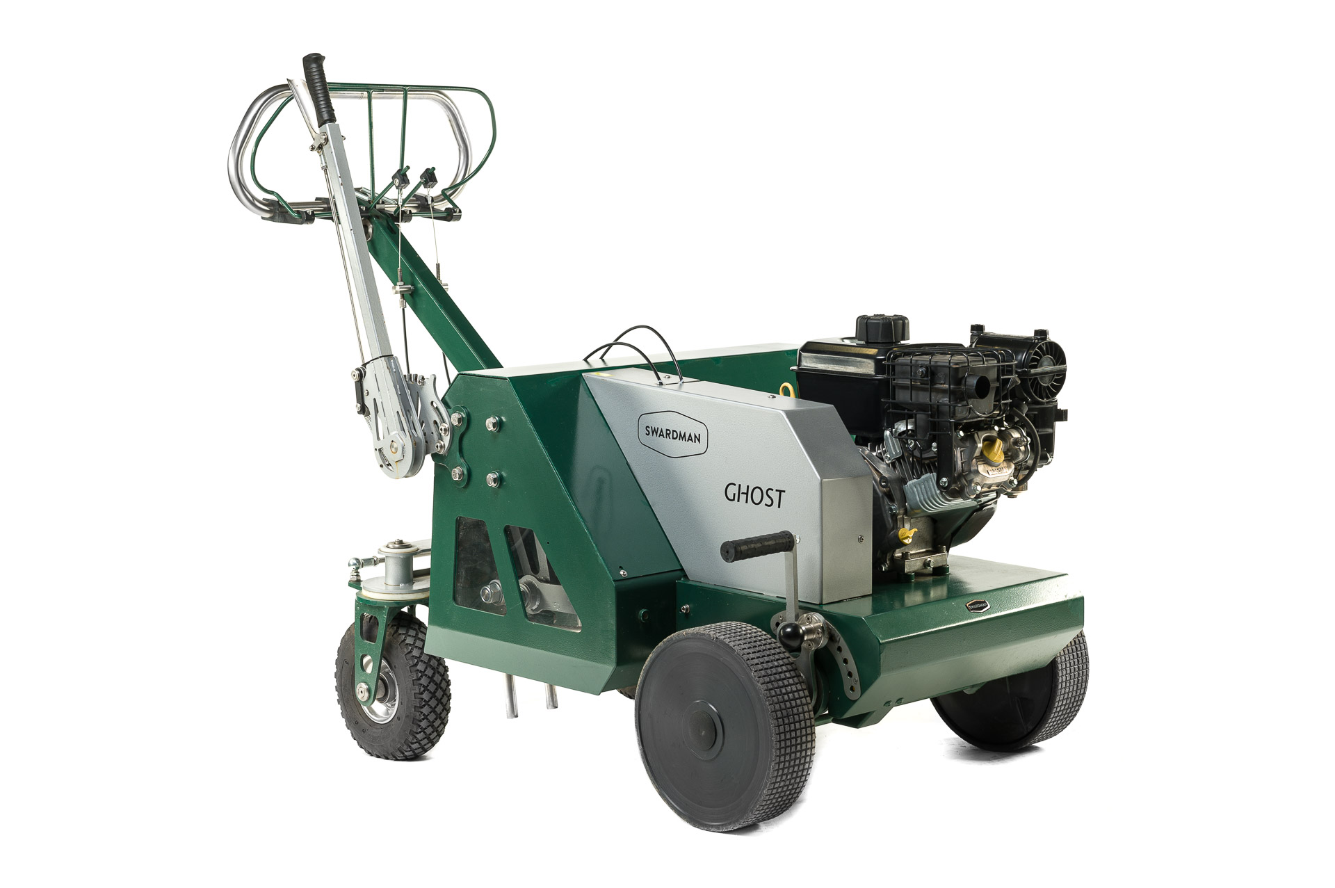 Professioneller Aerifizierer Swardman Ghost zum Belüften stark verdichteter Rasenböden. Erhöht die Luftzirkulation im Boden und verbessert das Vordringen von Wasser und Nährstoffen in die Wurzelschicht des Rasens.