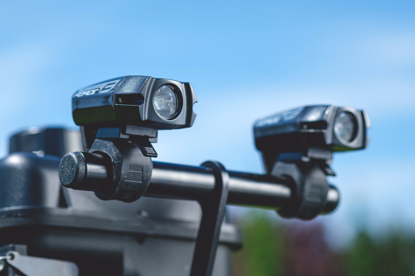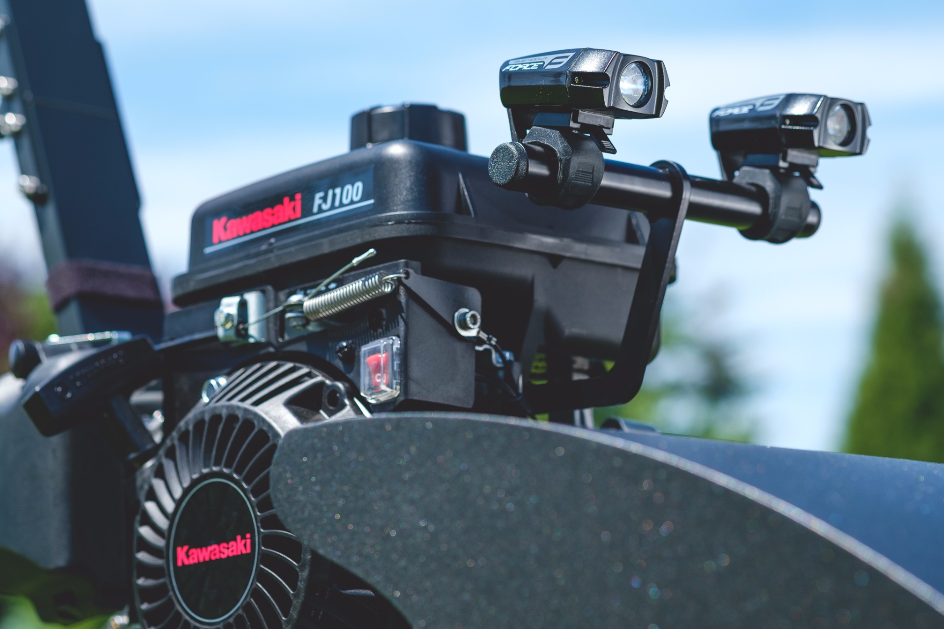 Set von LED-Scheinwerfern mit Halter am Rasenmäher für außerordentliche Situationen.