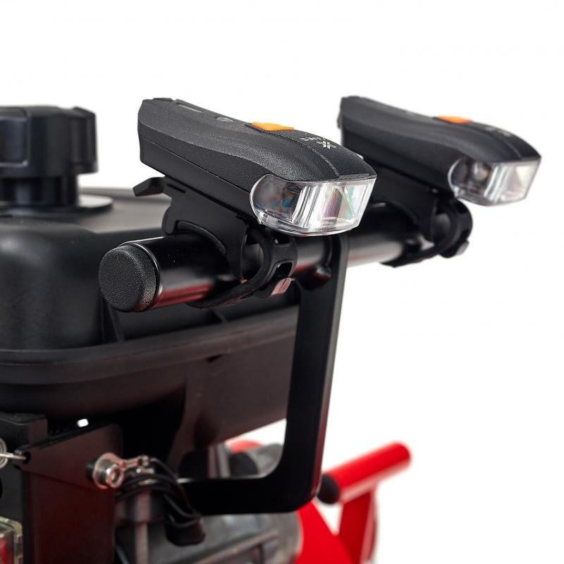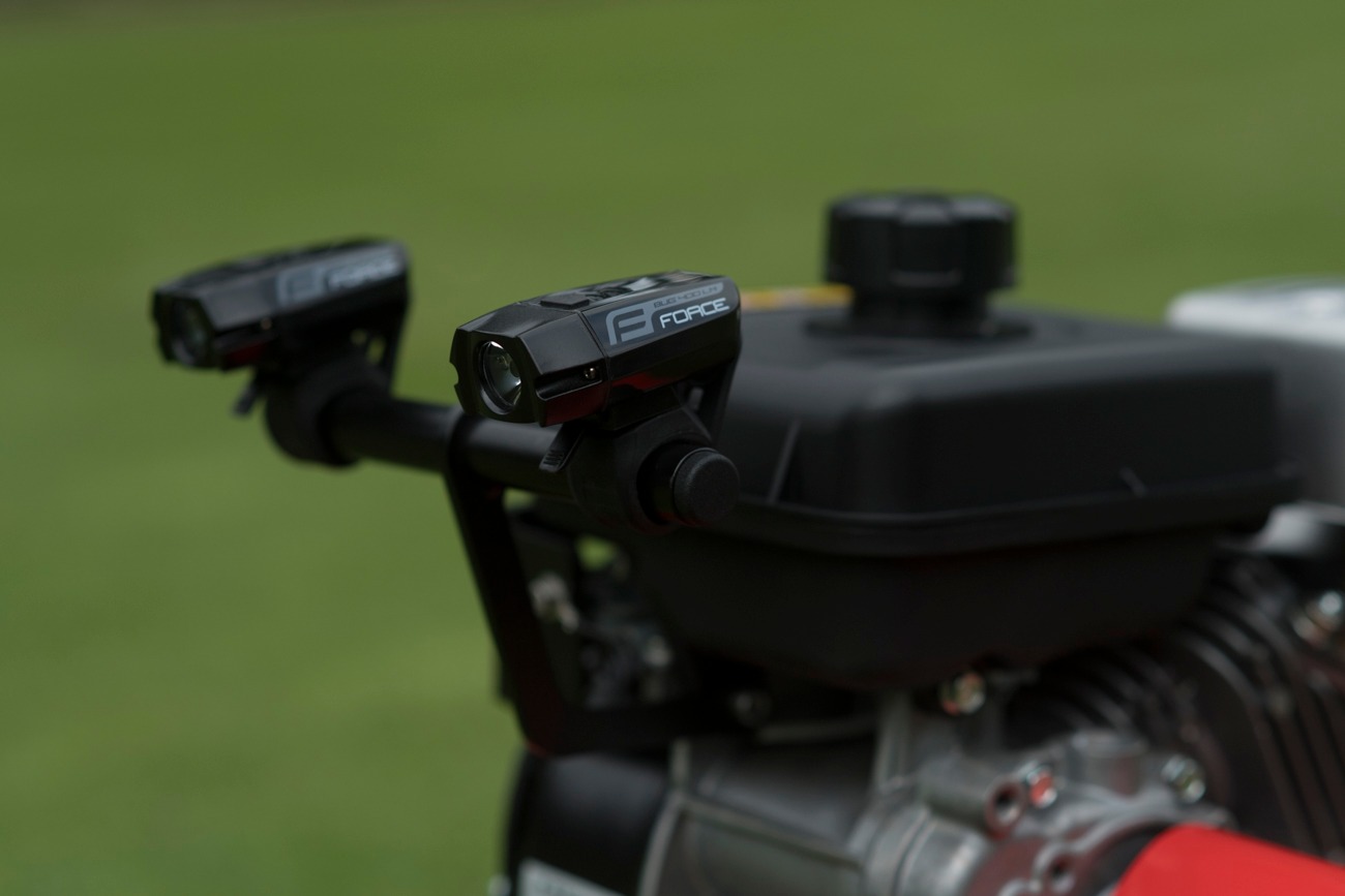 Ein spezieller Halter der Scheinwerfer stellt sicher, dass die Leuchten so tief wie möglich angebracht sind, damit sie die Fläche vor dem Rasenmäher gut beleuchten. Das Set beinhaltet zwei LED-Scheinwerfer, die den Rasen hell durchleuchten und ein sicheres und genaues Mähen gewährleisten.