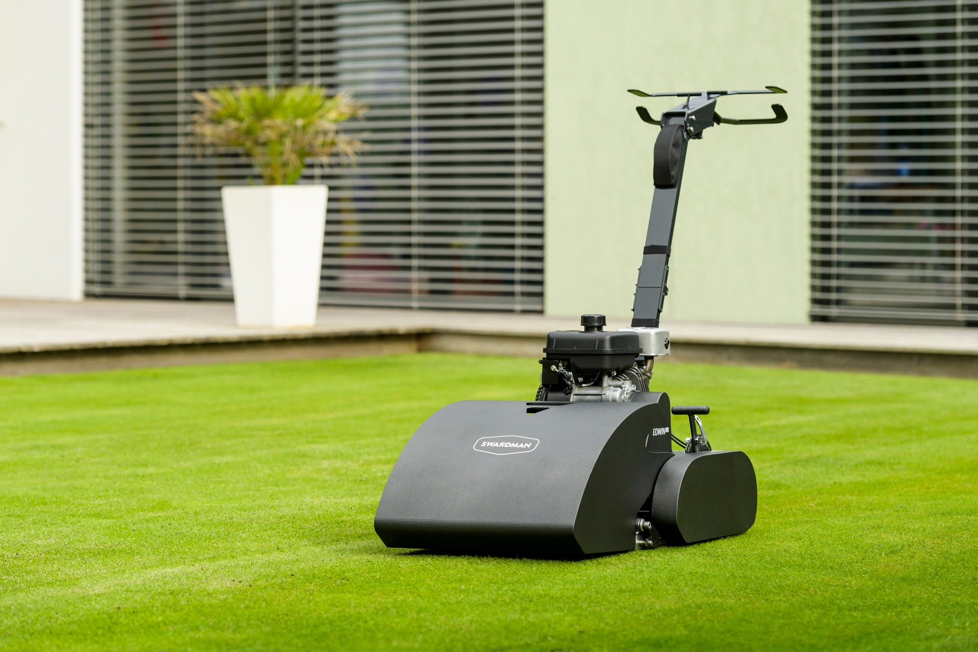 Die Swardman-Spindelmäher Edwin 2.1 sind für alle Liebhaber dichter, flach geschnittener Rasen bestimmt, die höchste Qualität erwarten – sowohl beim Rasen selbst als auch bei der Pflege des Geräts. Swardman legt bei der Produktion Wert auf erstklassige Materialien und Verarbeitung, um einen möglichst schonenden und sauberen Schnitt der Grashalme nach dem Scherenprinzip zu erreichen.