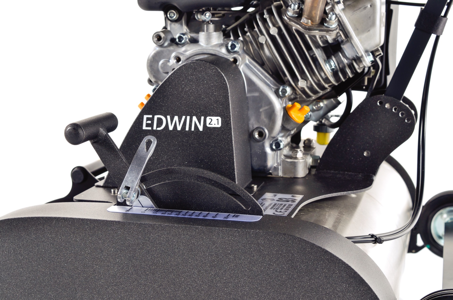 Die Modellreihe Edwin 2.1 ist mit einem Briggs & Stratton-Viertakt-Benzinmotor ausgestattet, der für den Fahrantrieb des Rasenmähers sorgt und gleichzeitig die Mähspindel bzw. Regenerierungskassette betreibt. Durch das System der Multifunktions-Regenerierungskassetten lässt sich der Edwin binnen zwei Minuten von einem Rasenmäher in einen Vertikutierer, einen Rasenlüfter oder eine Rotationsbürste zum Einarbeiten von Sand verwandeln.