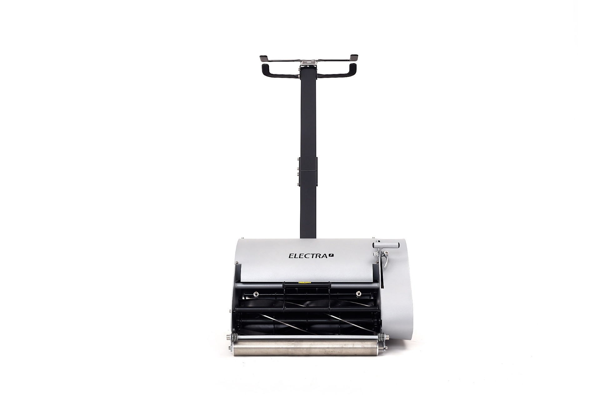 Der neue Electra wurde kabellos für eine maximale Bewegungsfreiheit konstruiert, wobei der Schwerpunkt auf simpler und intuitiver Bedienung lag. Auch weniger kräftige Personen können den Electra problemlos bedienen. Das Gerät wird mittels eines Schalters, einfacher Bedienknöpfe am Griff und zweier elektronischer Hebel für Antrieb und Mähen gesteuert. Die Geschwindigkeit wird einfach per Knopf reguliert. Als einziger Mäher weltweit verfügt der neue Electra über einen Rückwärtsgang, was das Manövrieren beim Wenden oder Parken wesentlich erleichtert. Für anspruchsvolle Kunden ist der Regenerations-Modus genau das Richtige. Er ermöglicht maximale Arbeitsumdrehungen der Spindel (Kassette) bei minimaler Geschwindigkeit - ideal beim Vertikutieren oder Lüften des Rasens.